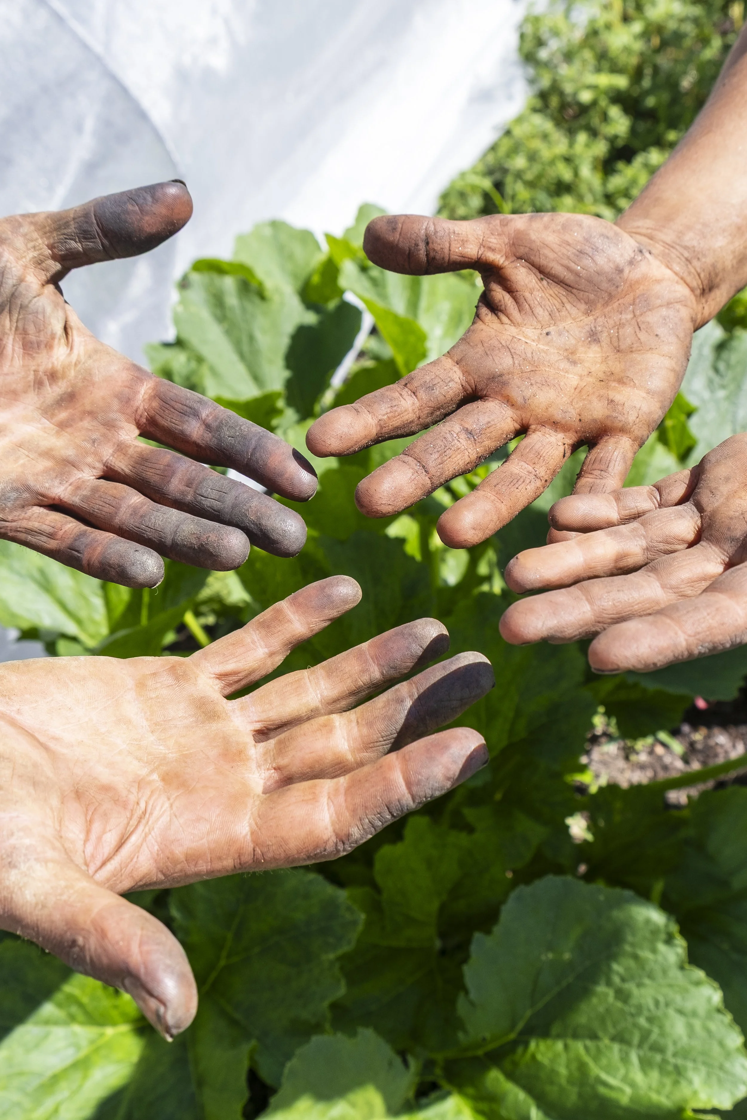 La Milpa des Iles c’est aussi les mains sales des travailleur.euse.s qui désherbent, récoltent, soignent et expérimentent pour faire pousser de beaux légumes.
